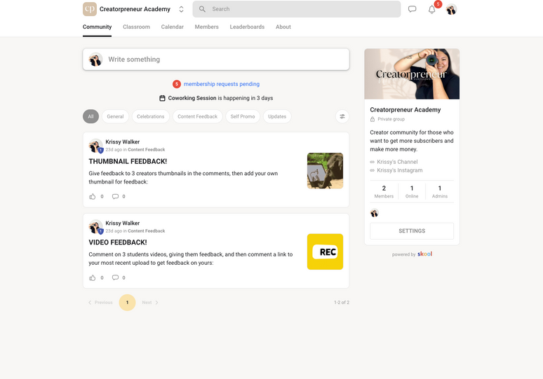 We also host LIVE weekly calls, where other programs will have just a course and a community page for you to post in. In the Creatorpreneur Academy, you have weekly access to Krissy and all of the creators in the community on a LIVE call.