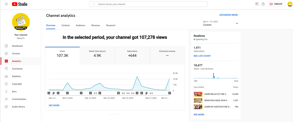 @NekeyTV - gained +644 subscribers and +107k views in 26 days!
