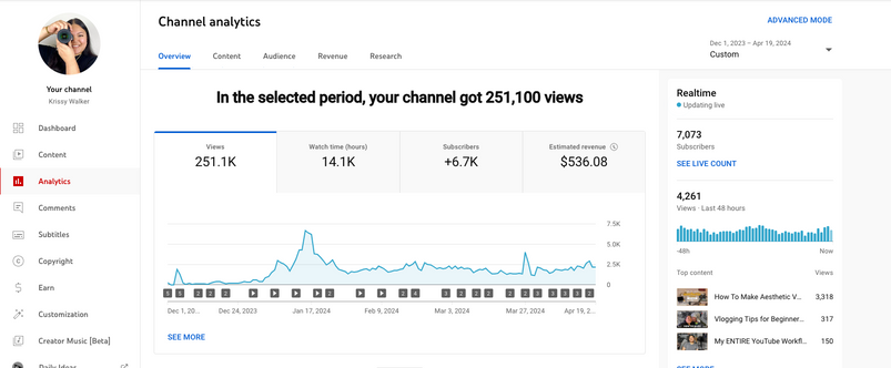 @byKrissyWalker - gained +6,700 subscribers in about 4 months and got monetized in 30 days!