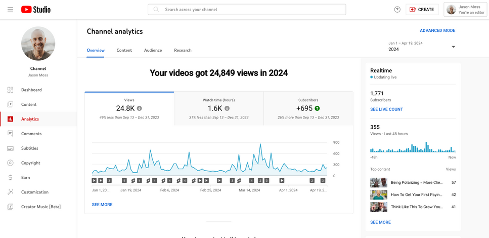 While working with Jason, he was able to accomplish new heights to his channel AND grow his income!
